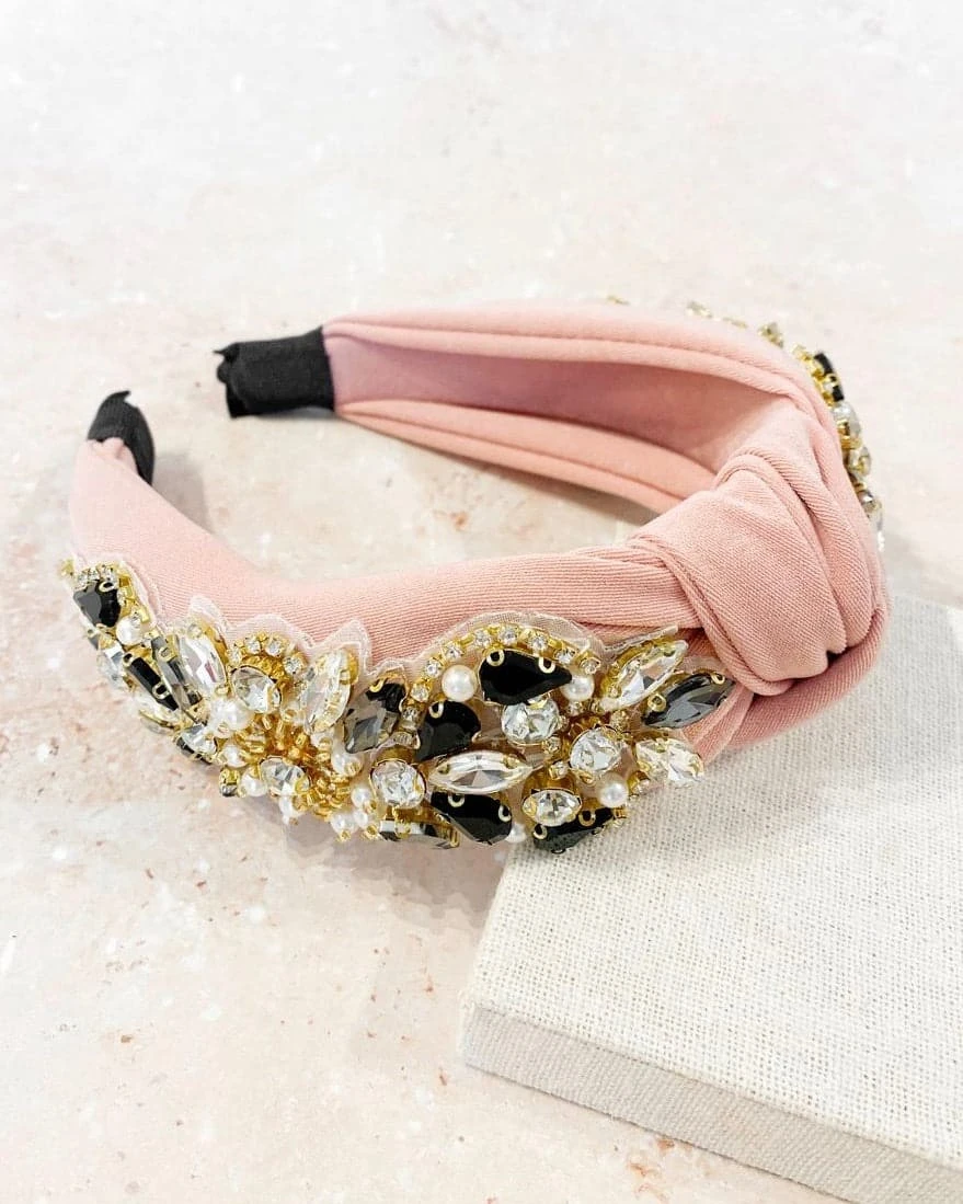 Alva Embellished Knotted Headband – Pink