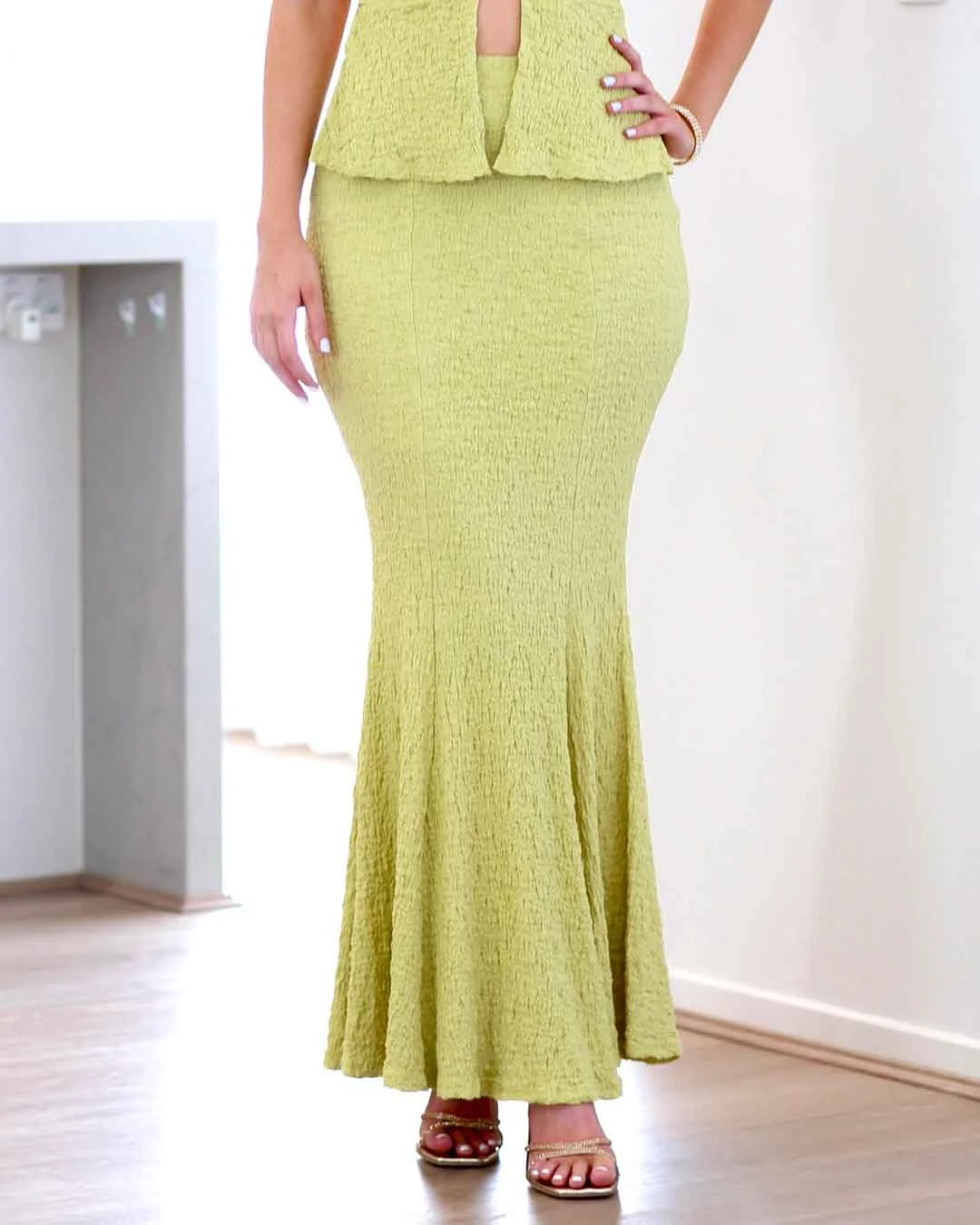 Our new Amy Maxi Skirt is a maxi length mermaid skirt, featuring an invisible back seam zipper, lining and a bit of stretch throughout the garment. Complete the look with our Amy Top. Â