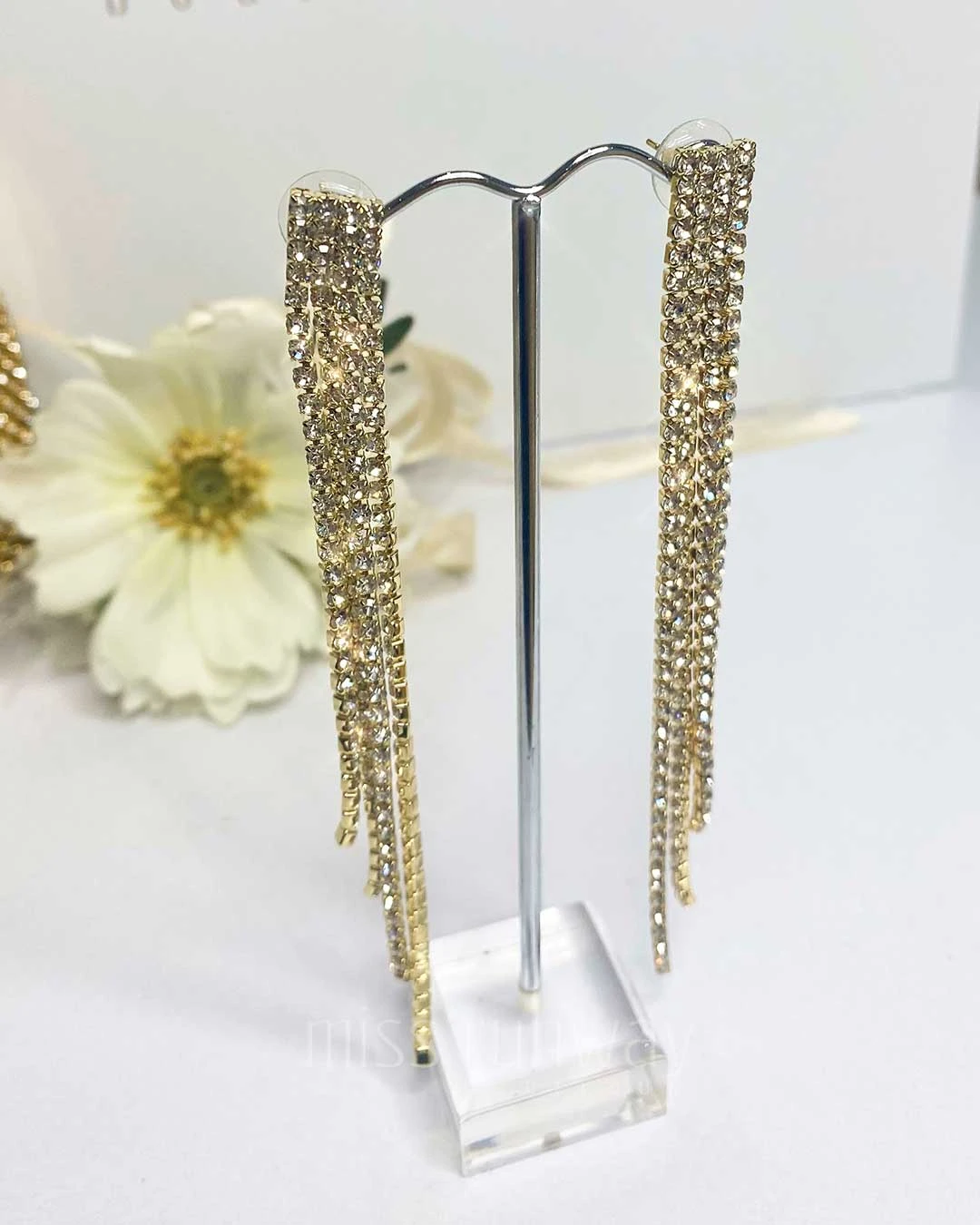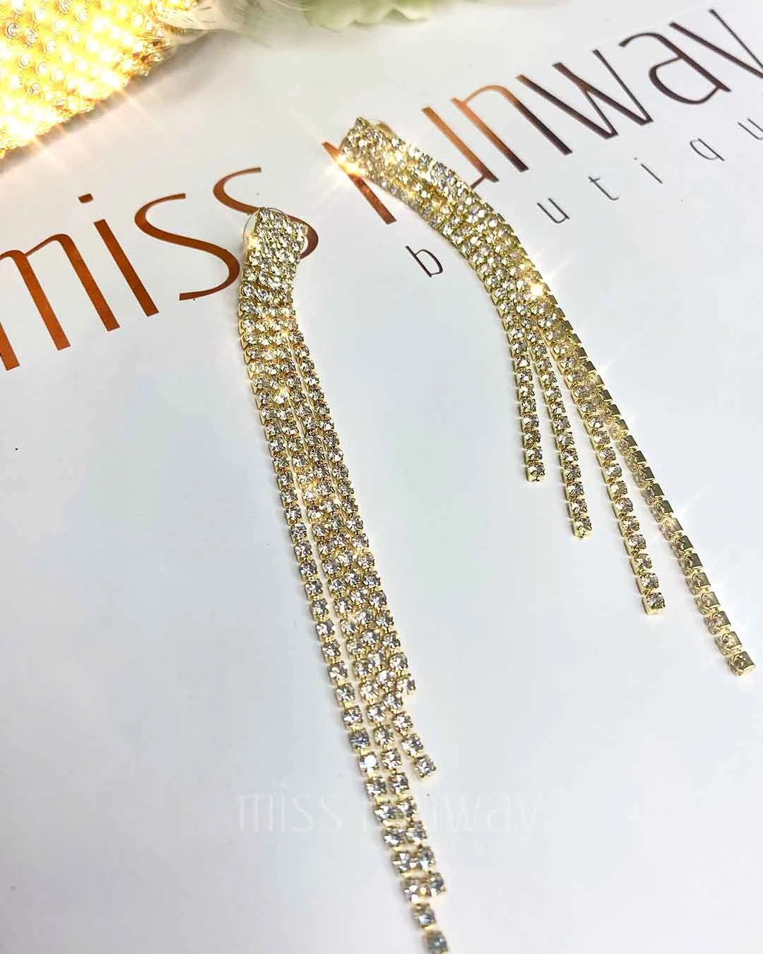 Our Audrey Earrings is that statement piece of bling you need in your accessories cupboard. All covered in diamantes!