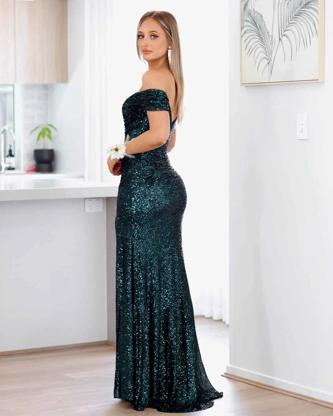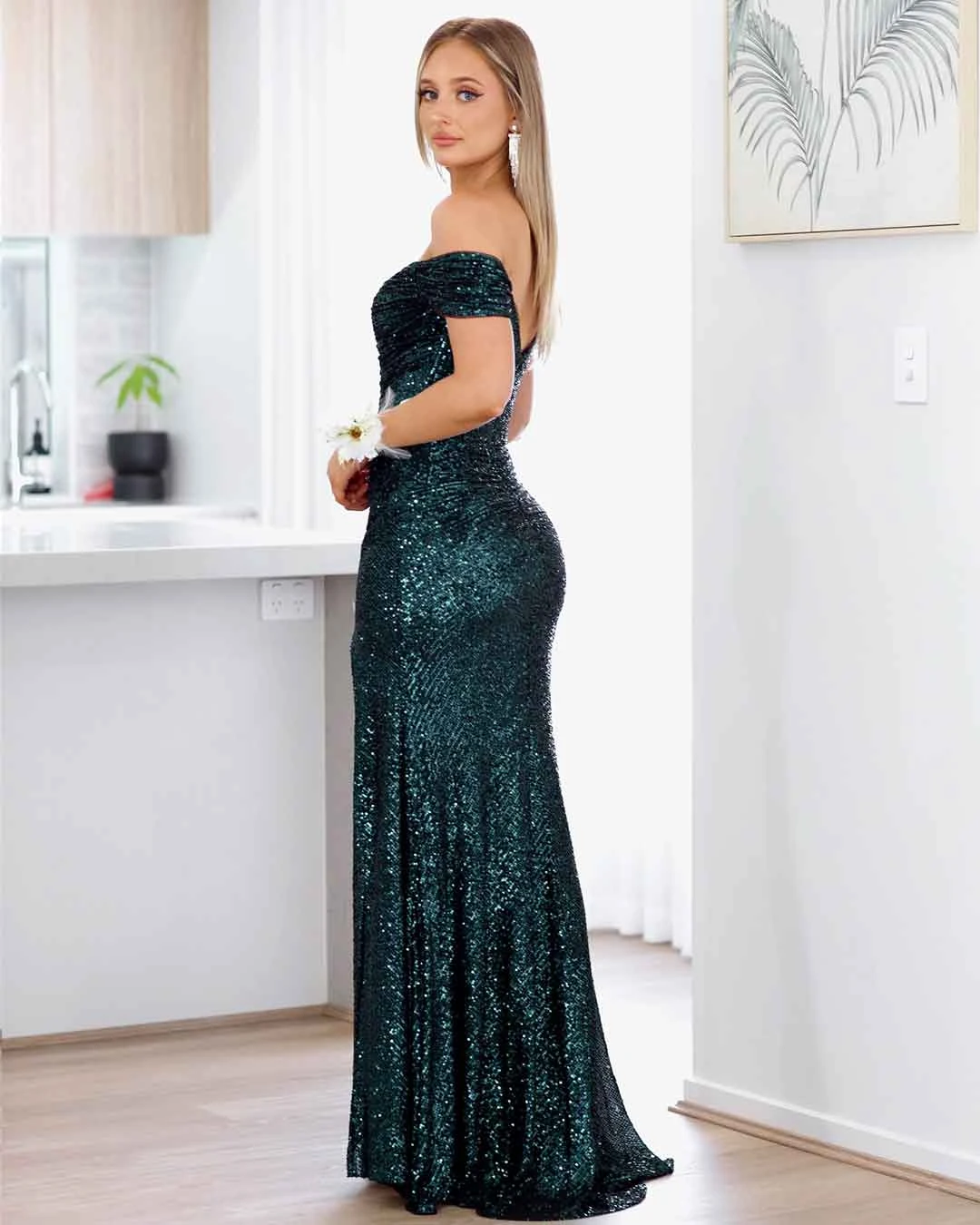 Bellatrix Off Shoulder Sequin Gown – Emerald