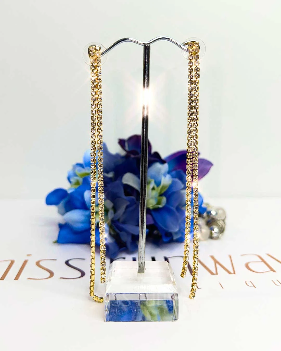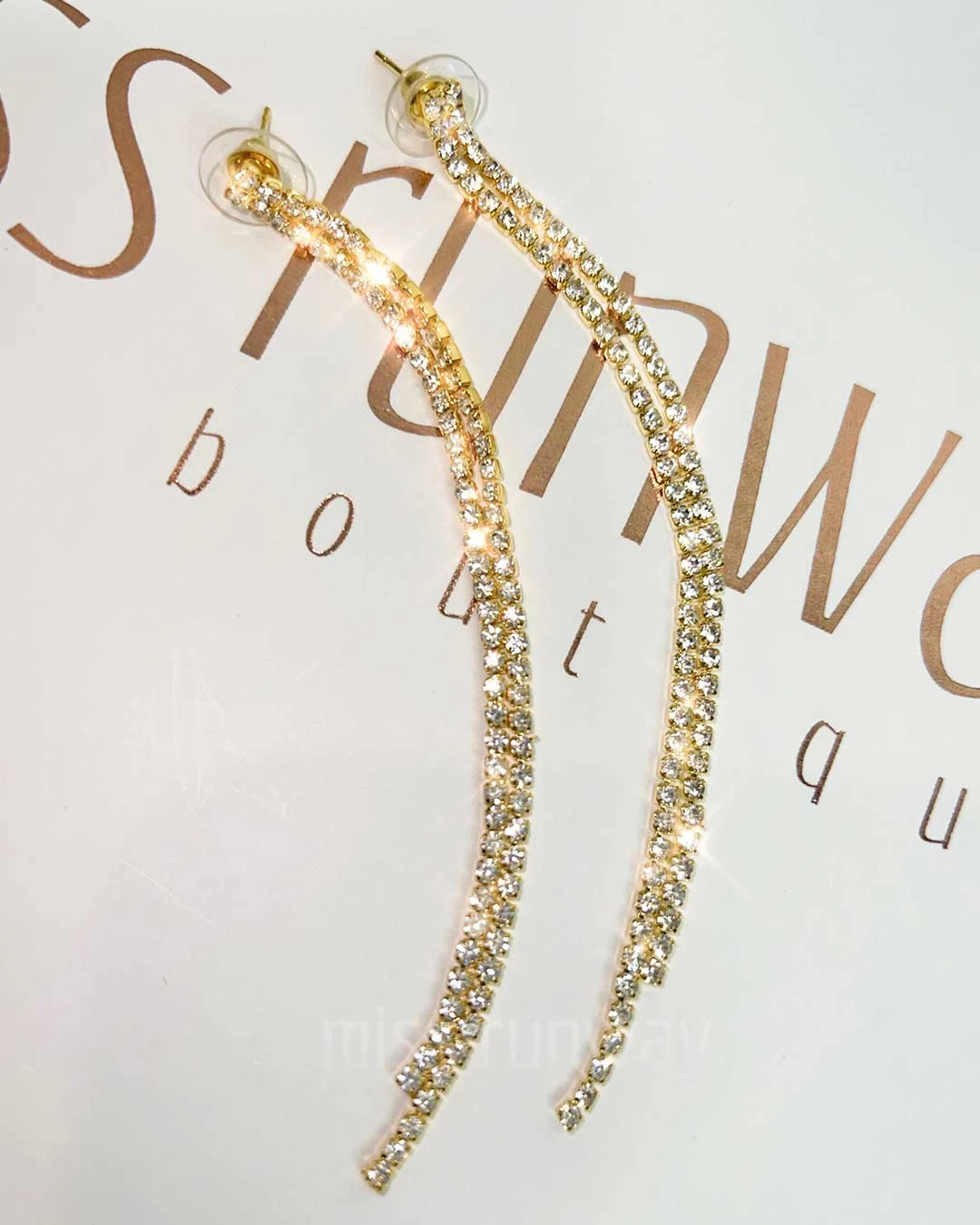 Our Blaze Earrings is that statement piece of bling you need in your accessories cupboard. All covered in diamantes!