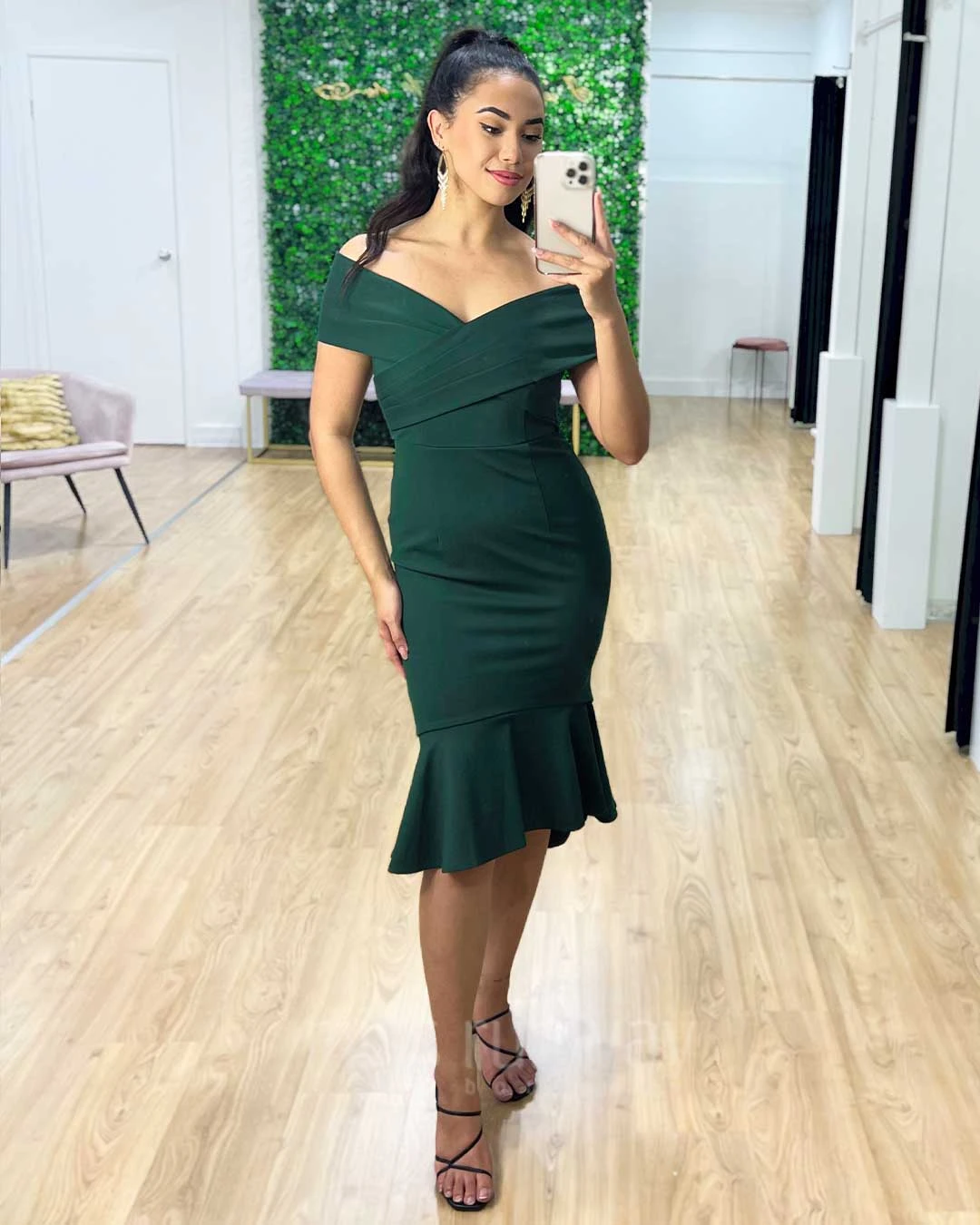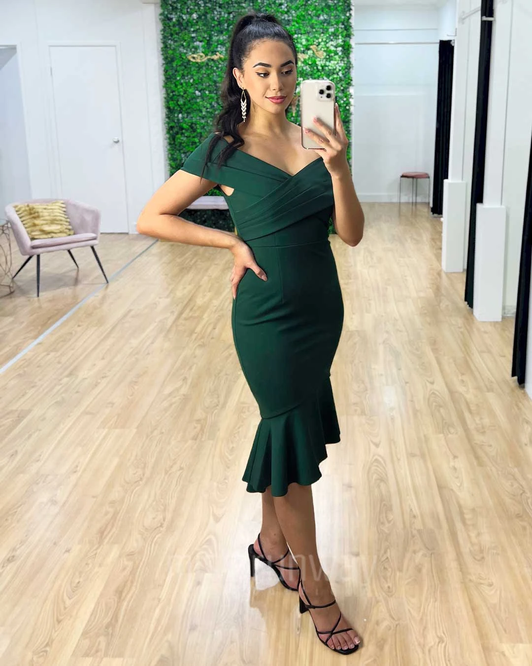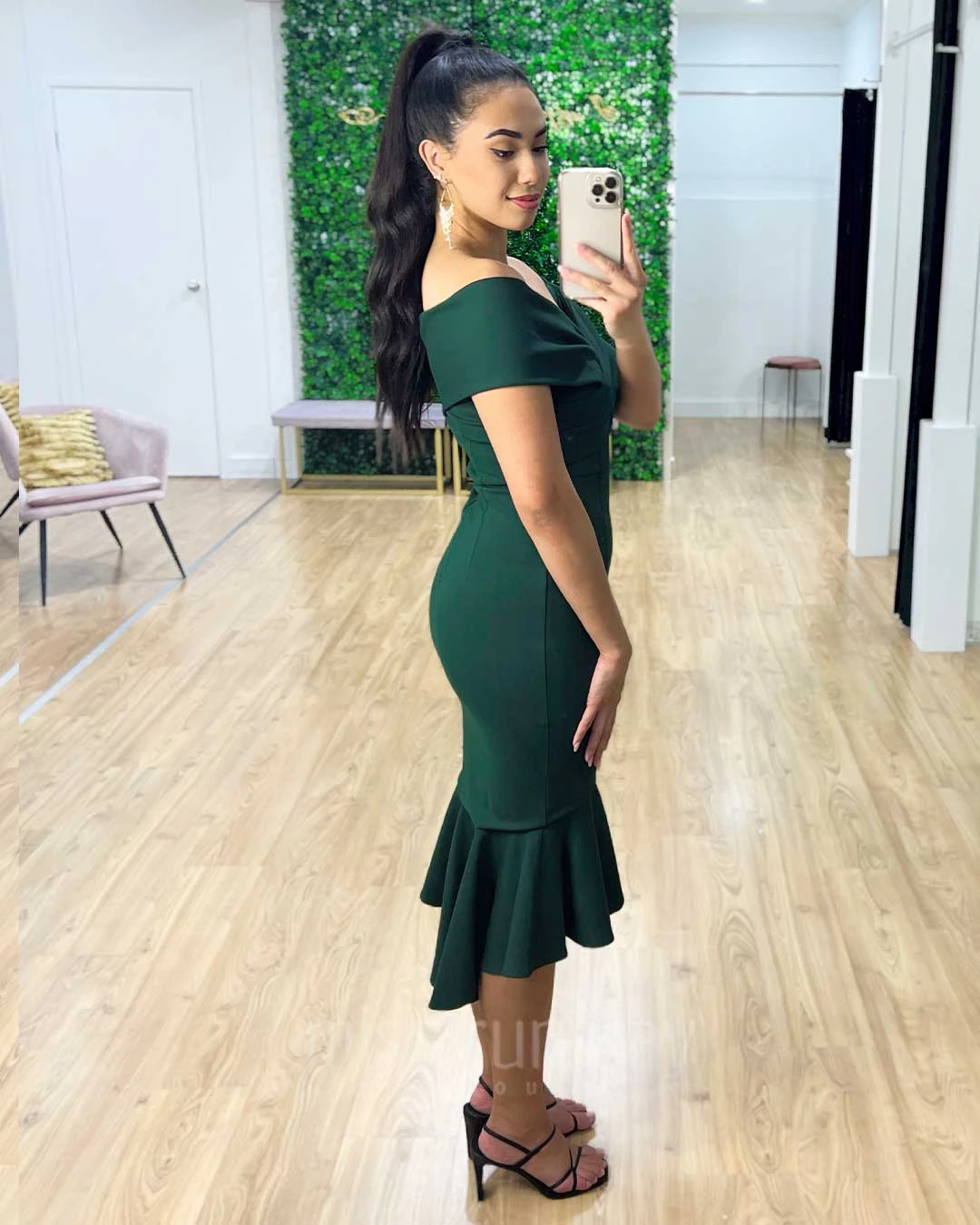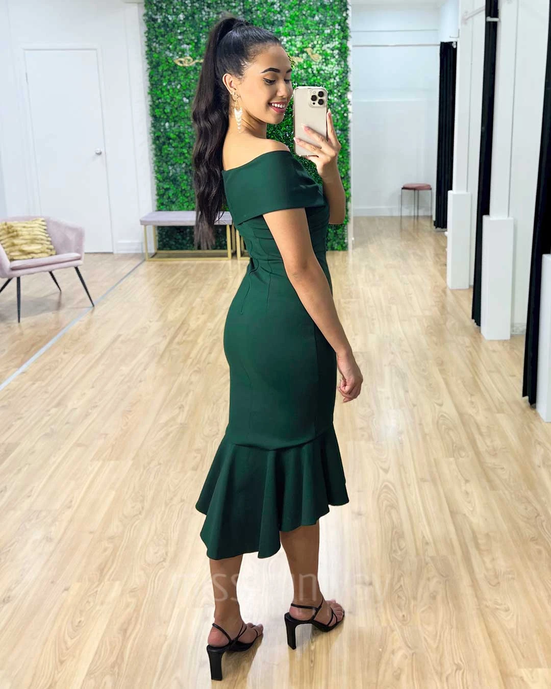 The Brienne Dress is figure hugging and has elegance written all over it! Get a kick out of the fun flared skirt hemline and off shoulder neckline. If you ever needed to impress by keeping it classy, this is the dress for you.
