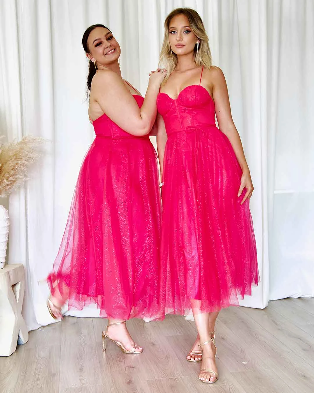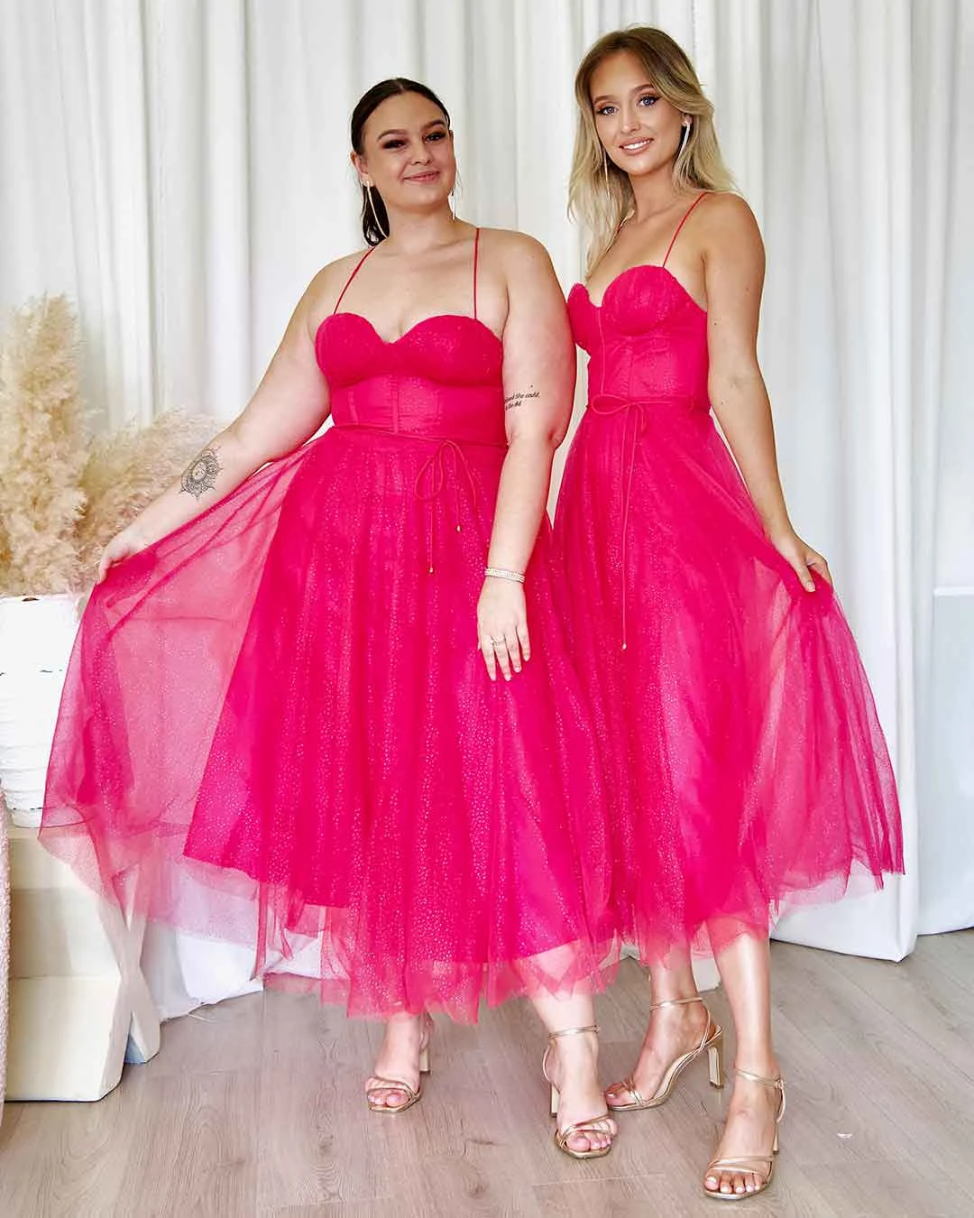 The new Carrie Glitter Midi Dress is so special. Carrie Bradshaw vibes featuring midi length, corset top, tulle gown and cross back. Be ready to feel like a princess!