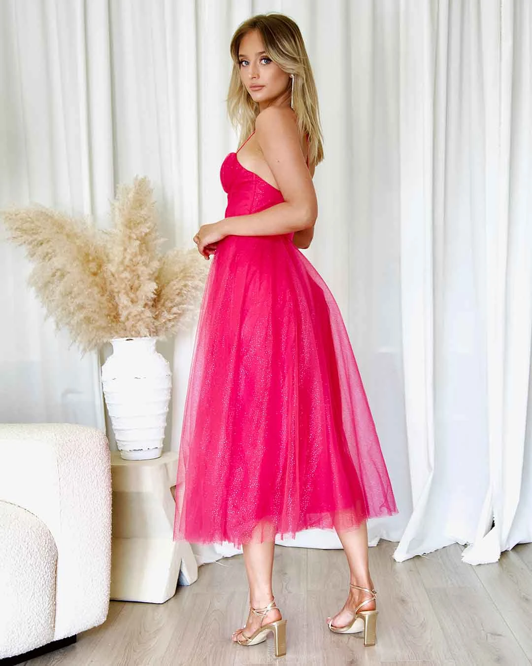 Carrie Glitter Midi Dress – Fuchsia
