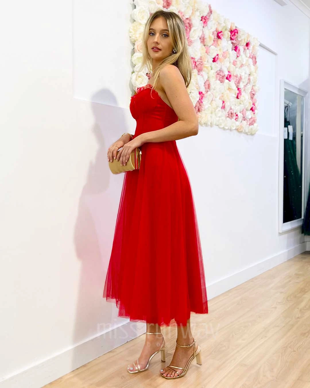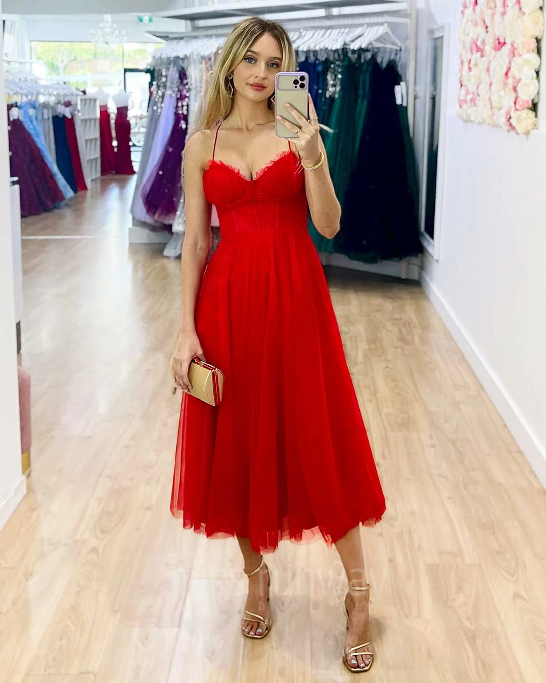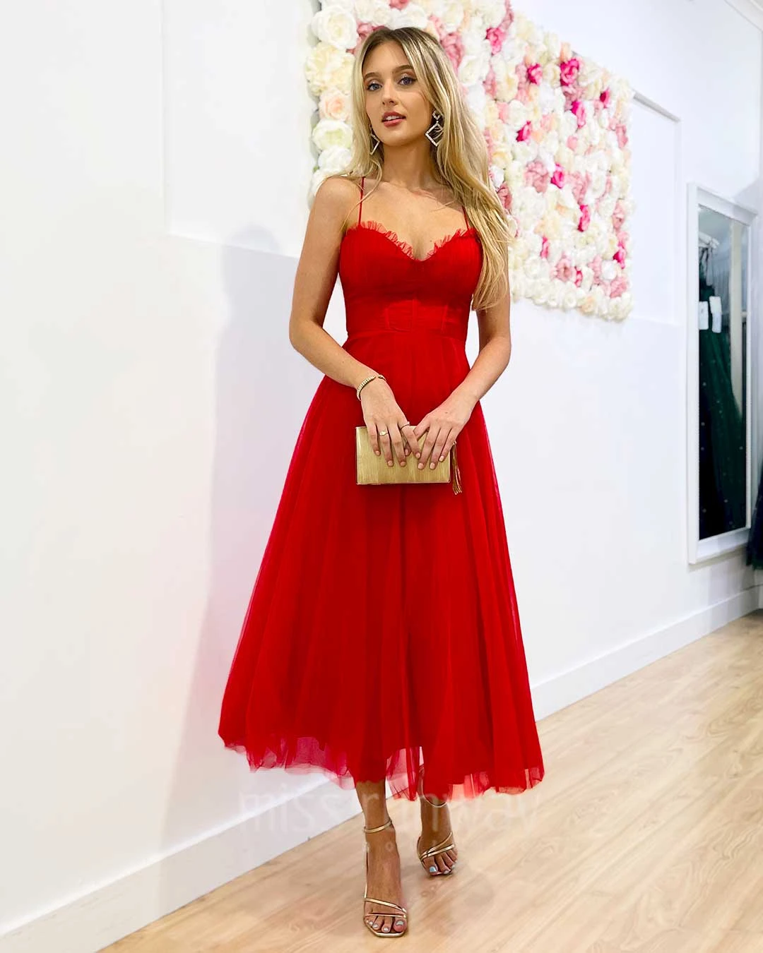 The new Carrie Midi Dress is so special. Carrie Bradshaw vibes featuring midi length, corset top, tulle gown and cross back. Be ready to feel like a princess!