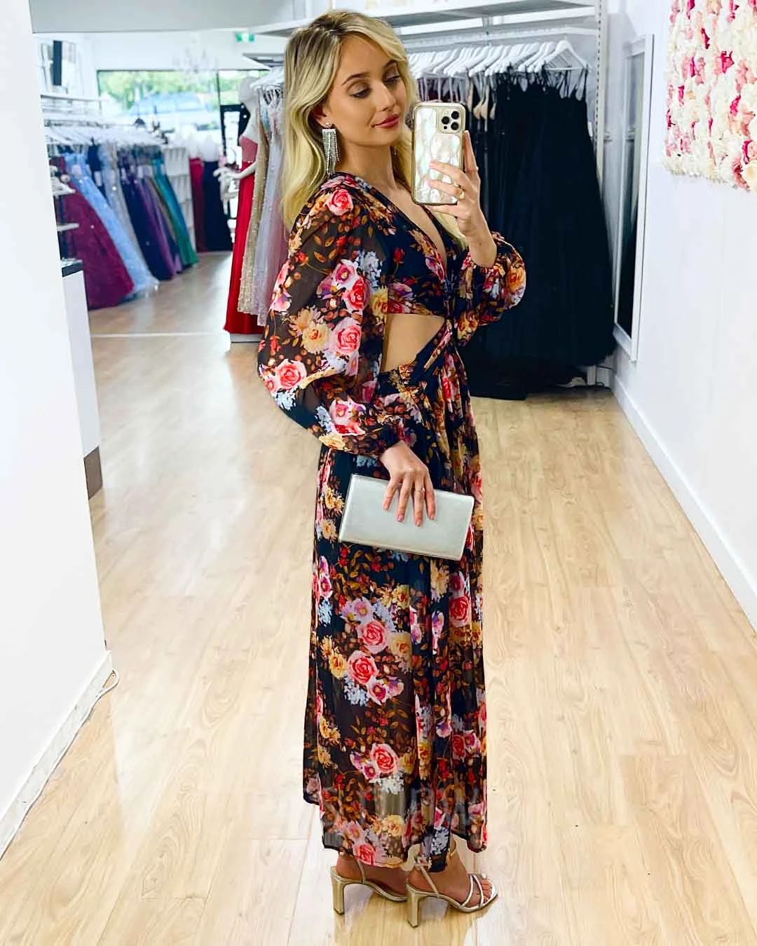 The Chloe Chiffon Maxi Dress is absolutely stunning! The chiffon fabric skims your body for ultra comfort and ease. Featuring: