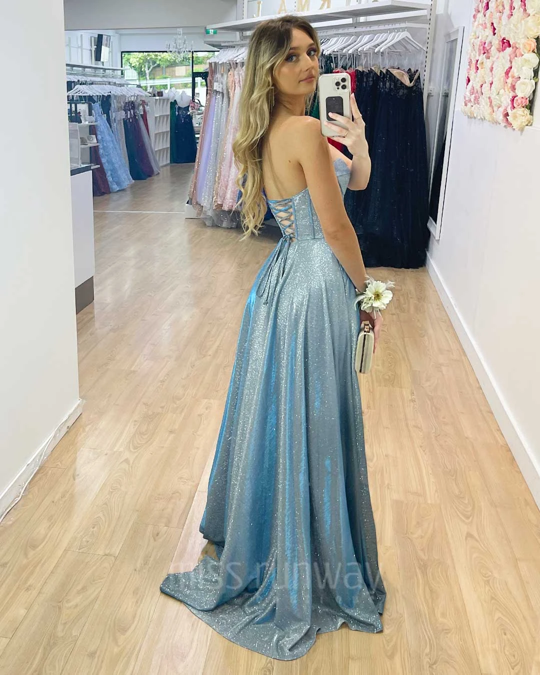 Designed for the one who wants to make a statement, the Delphine Glitter Gown will not disappoint! The structured bodice is reminiscent of classic corsetry with bold lines and an exposed lace up back. This style is lovingly crafted with a famous sparkle satin fabric meaning you’re guaranteed to have all eyes on you! Featuring a high leg split, the Daphne is the ultimate combination of classic elegance and modern trend setter.