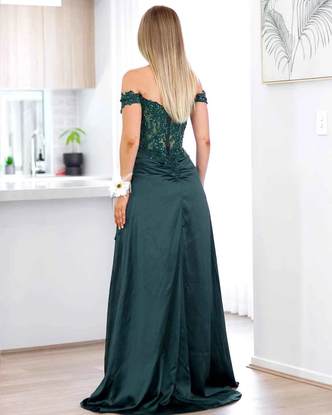 Eliza Beaded Lace Corset Gown – Emerald