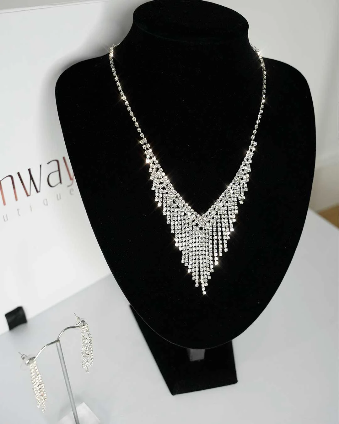 Our Elizabeth Jewellery Set is that statement piece of bling you need in your accessories cupboard. All covered in diamantes!