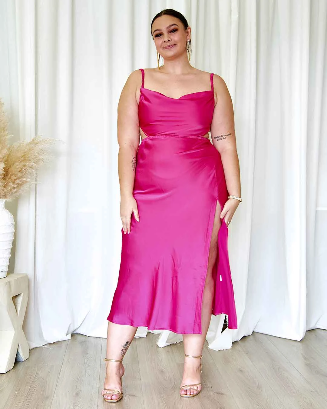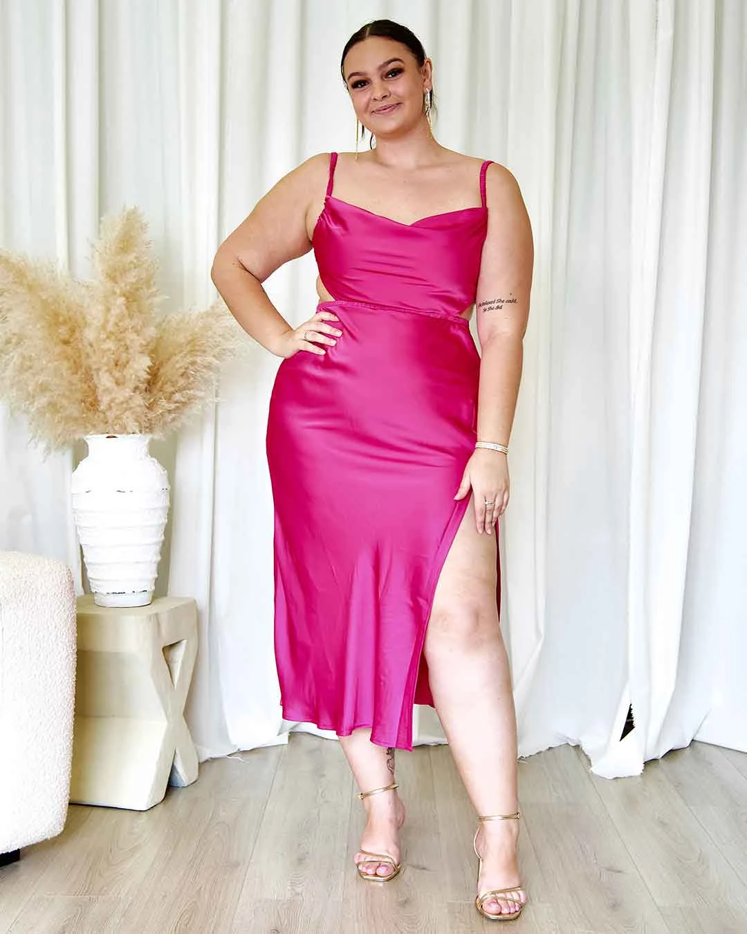 The Gaia Satin Midi Dress is the perfect dress for so many occasions! The silky satin fabric skims your body for ultra comfort and ease.