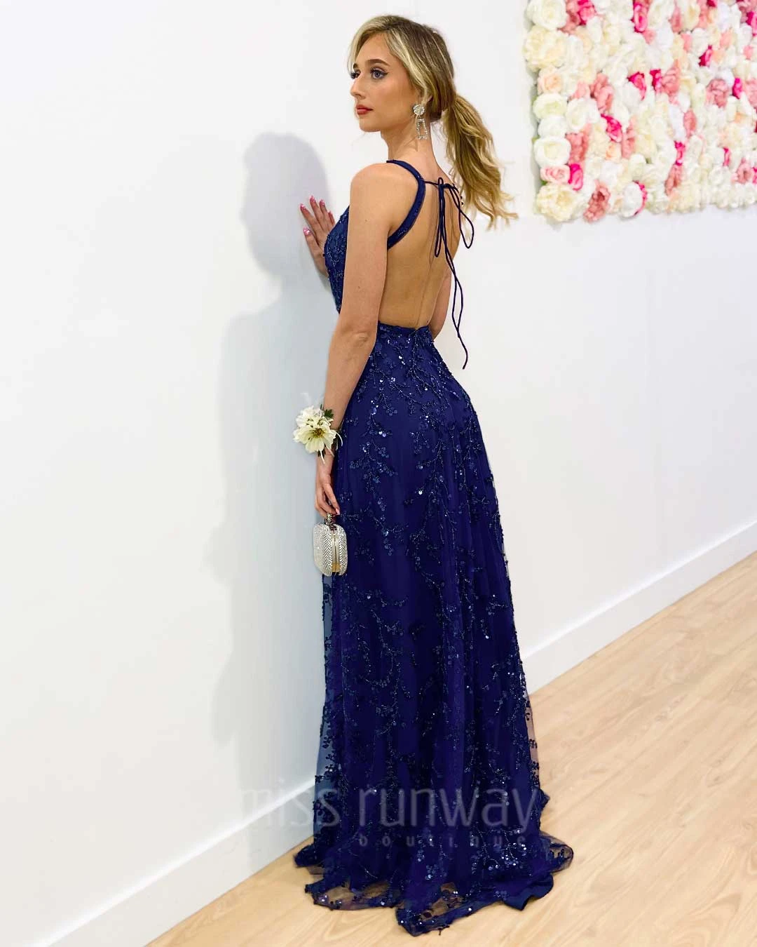 The new Isabella Beaded Gown is a must for your next formal party. Featuring a deep neckline with lace up back straps and also a deep back. Glide as you dance all night long on the dance floor with a full flare skirt that will capture the light and have you shining bright like a diamond.