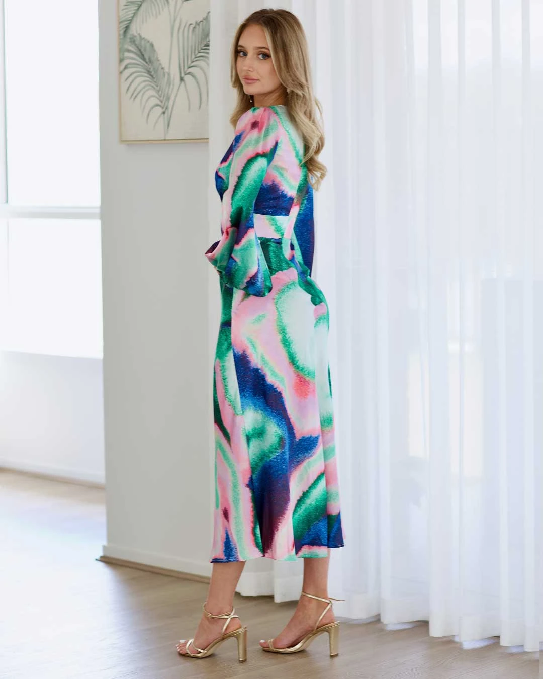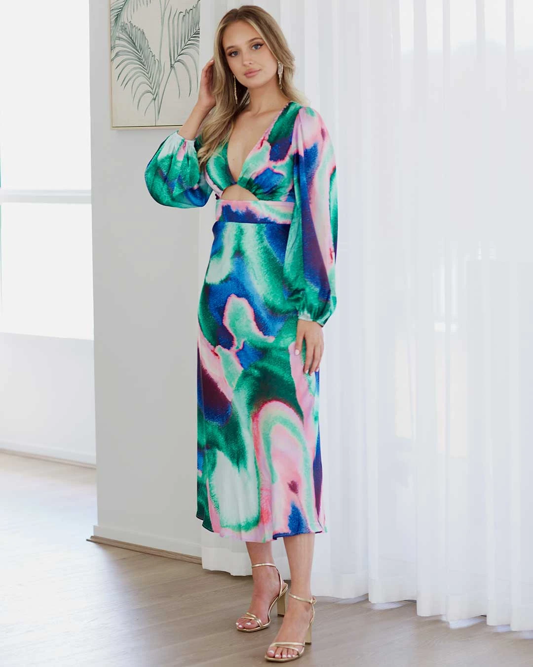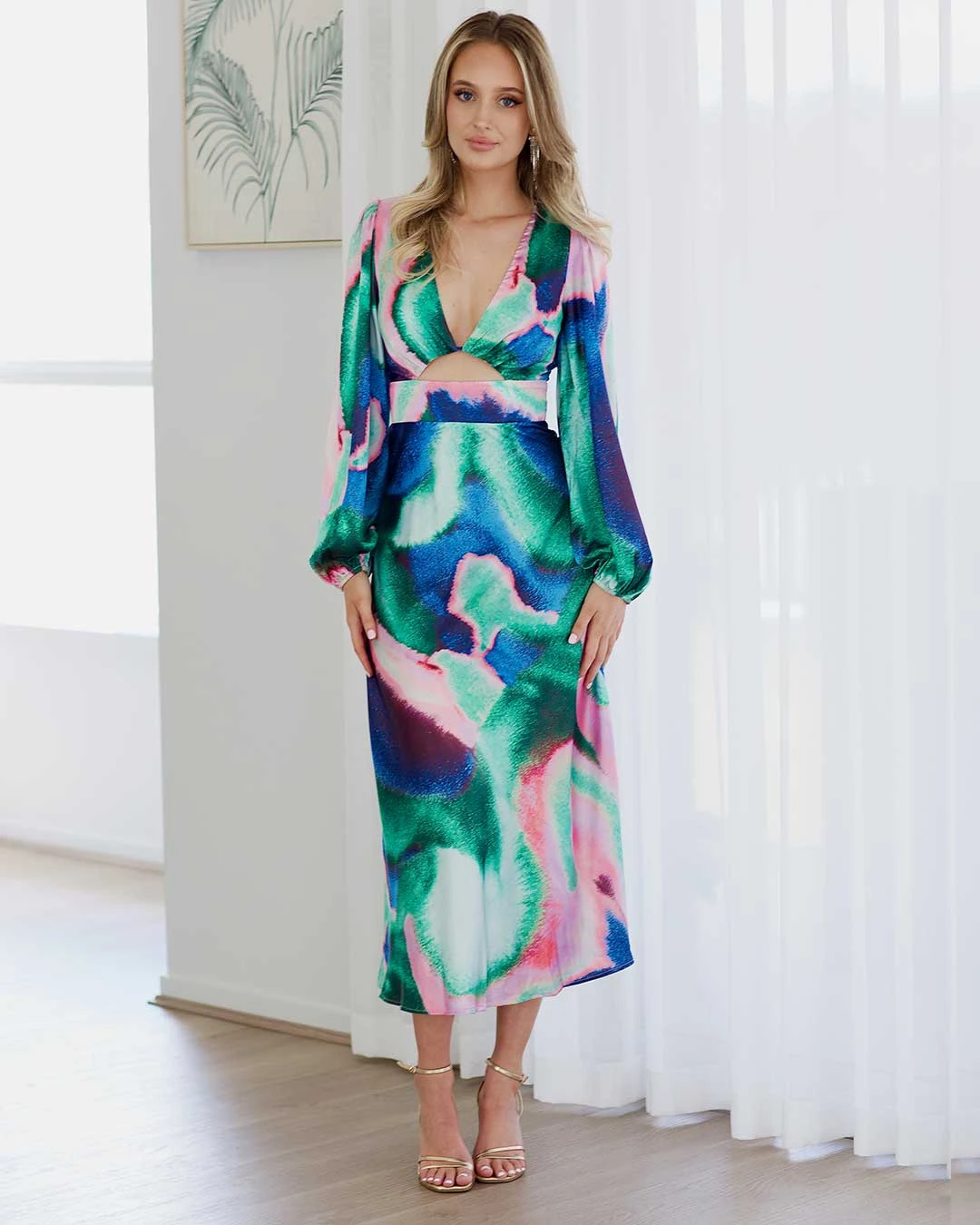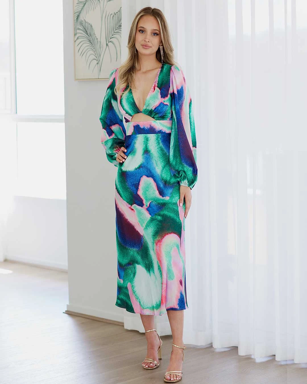 Experience pure sophistication and style with our Kai Satin Maxi Dress. This elegant piece boasts long sleeves, a deep V-neckline with a cut-out front detail, and a flowing A-line maxi skirt. Crafted from luxurious silky-smooth satin and adorned with a stunning print, it’s the ideal choice for any special occasion.
