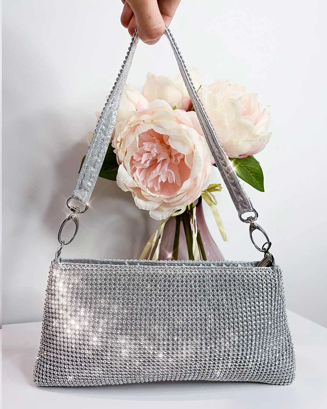 Lola Diamante Mini Bag – Silver