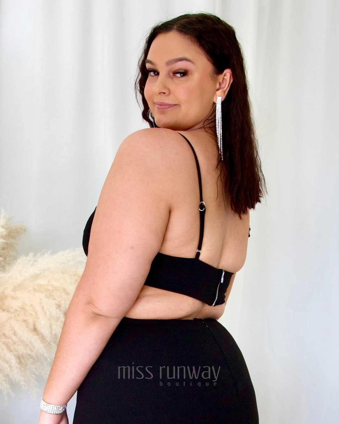 The same style as our popular Margot Mini Dress, please take a moment to look to our new Margot Top. Features crop length and a sparkling crystals details in the bottom of the top. Complete your outfit with the Margot Mini Skirt.