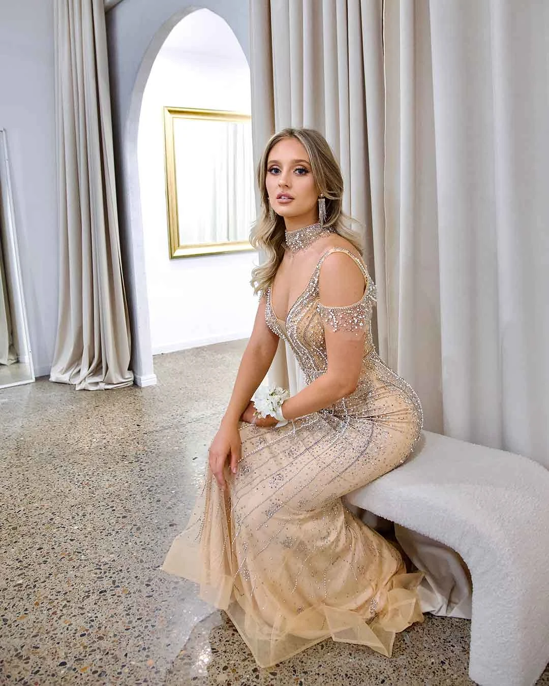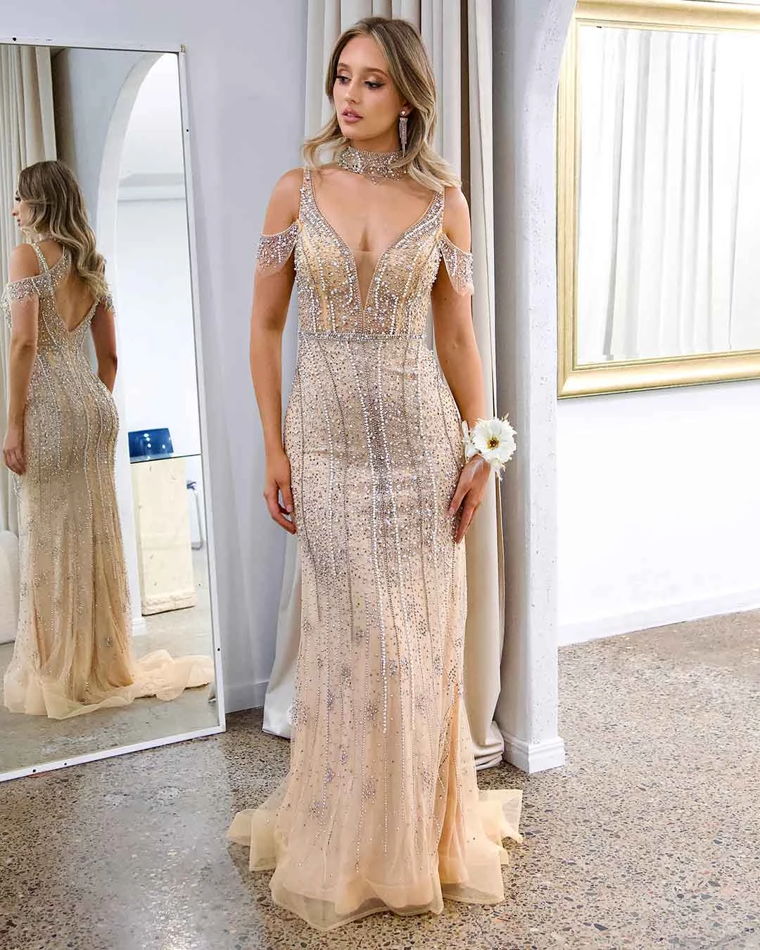 Mariah Beaded Gown – Nude