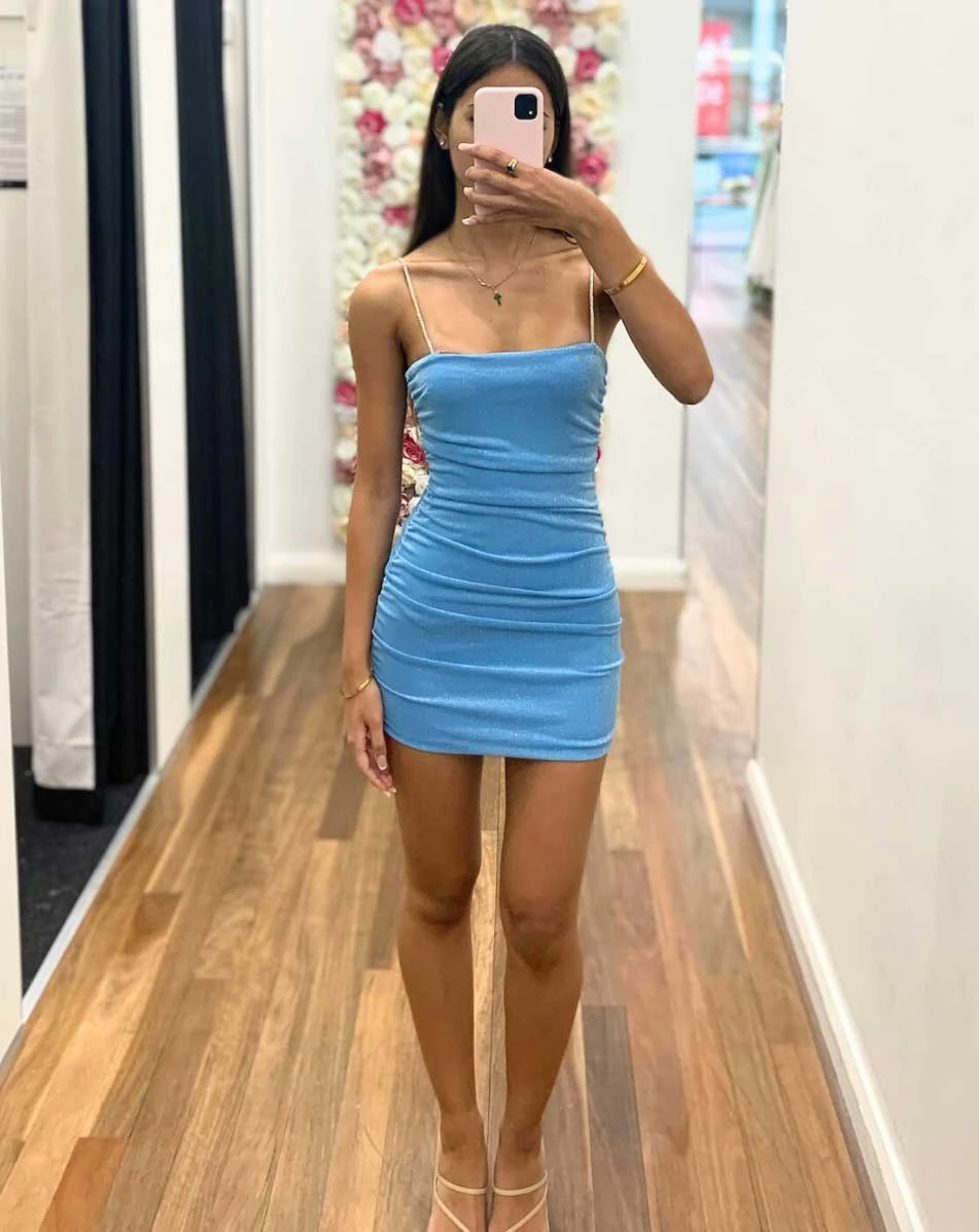 Maya Glitter Mini Dress – Light Blue