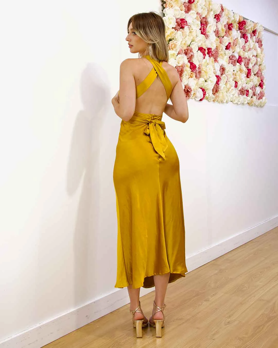 Nicola Satin Midi Dress – Mustard