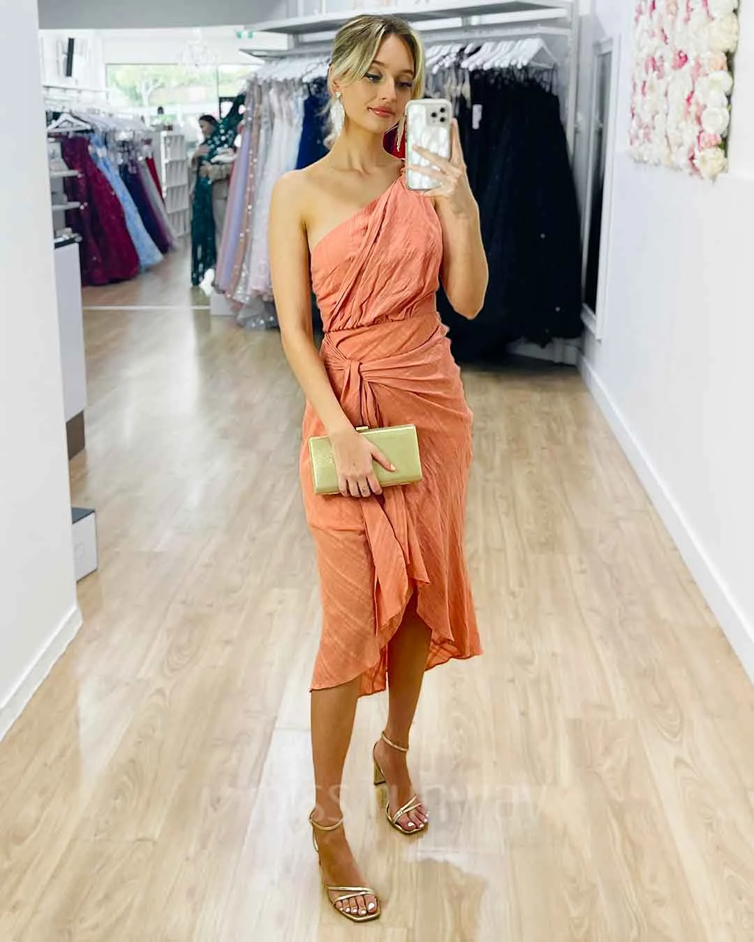 Olivia One Shoulder Midi Dress – Peach