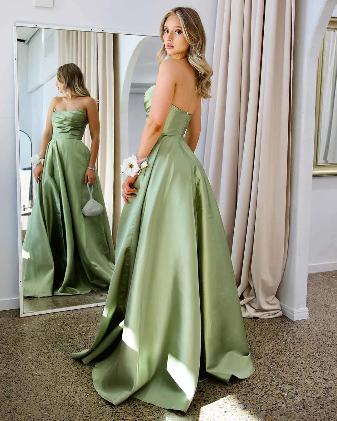 Paola Strapless Gown – Pistachio