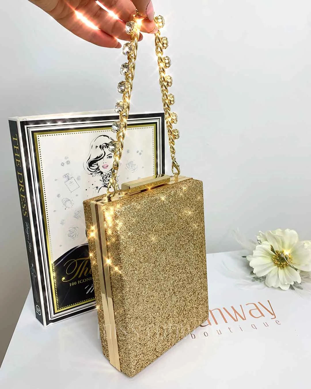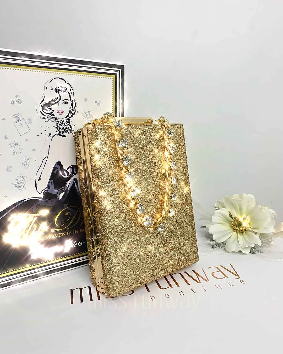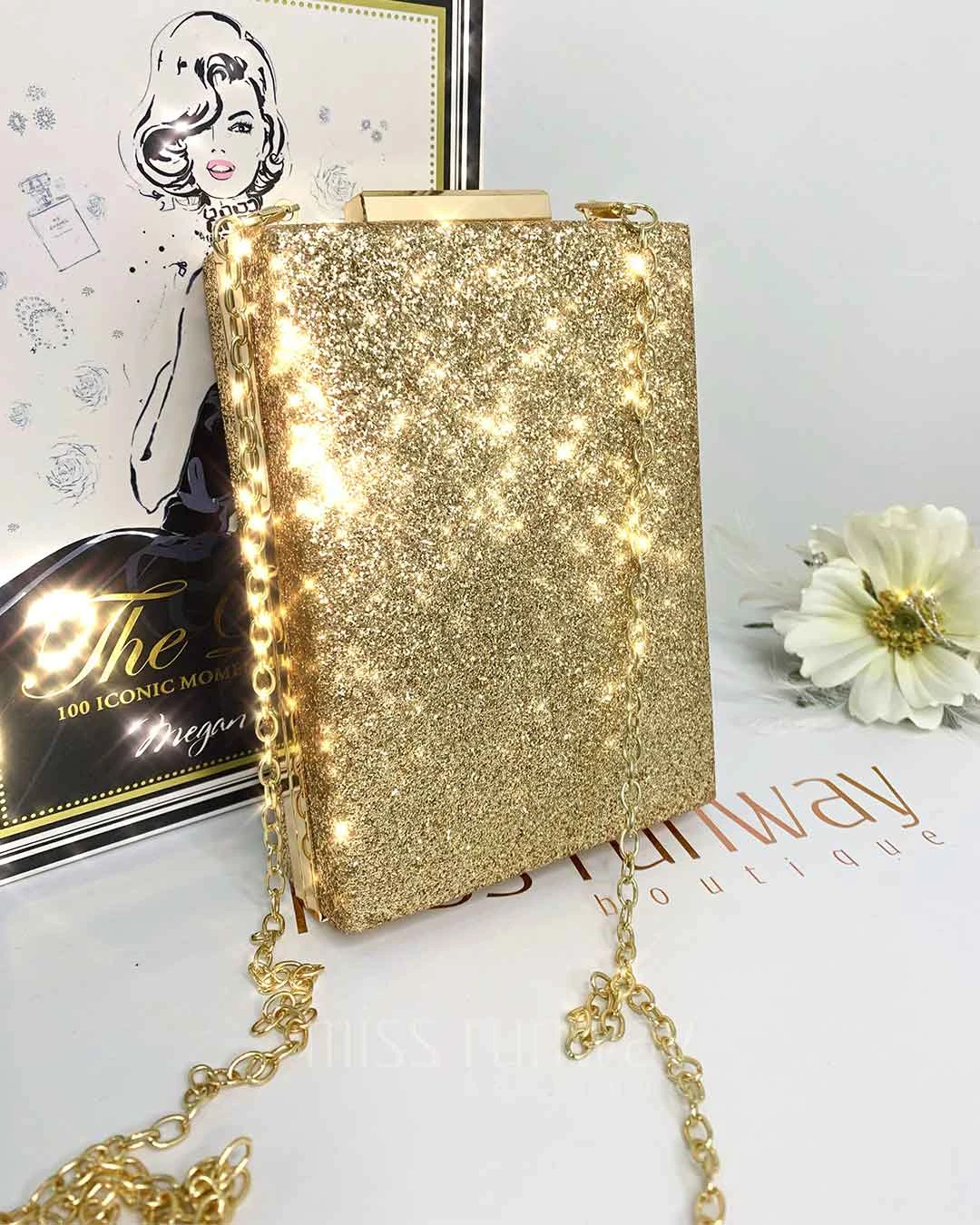 Sandy Glitter Box Clutch – Gold