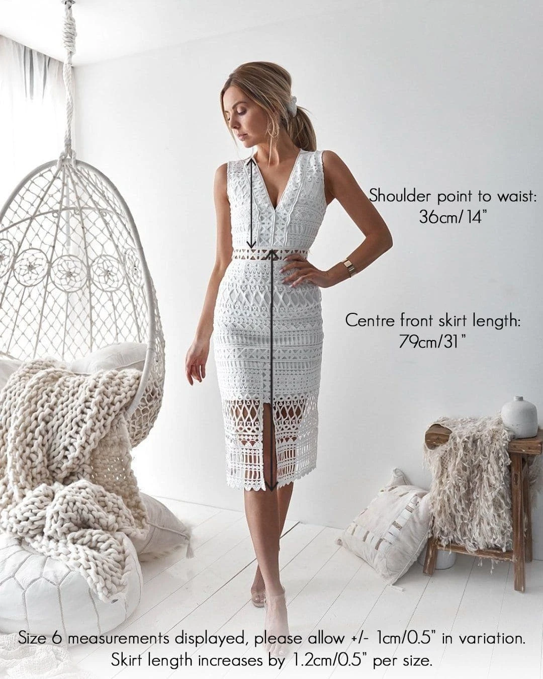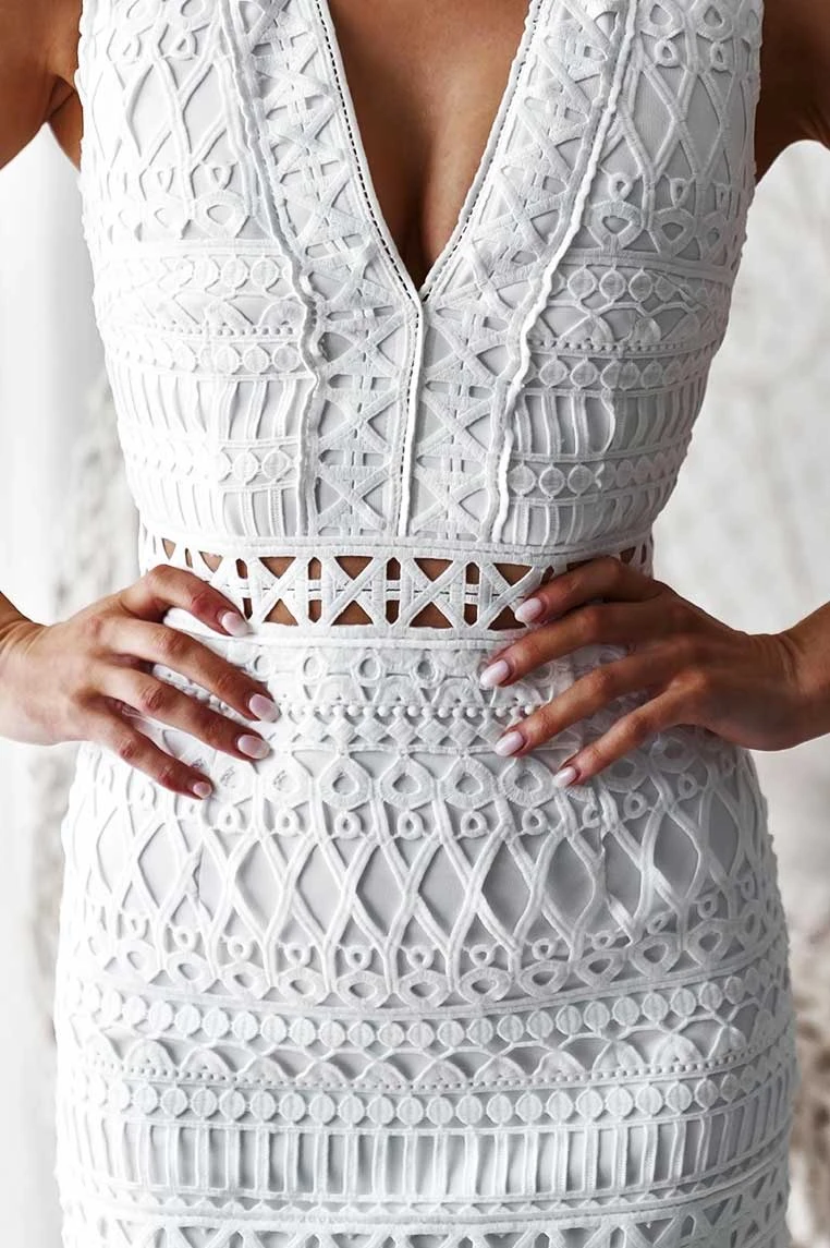 Scarlet Lace Midi Dress – White