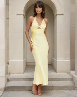 Elevate your elegance with the Skye Halterneck Maxi Dress. Featuring a flattering halterneck design and a keyhole bust with lining for comfort and support, this dress fastens securely with a back clasp and zipper. Its flowing maxi length creates a graceful silhouette, perfect for sophisticated occasions.