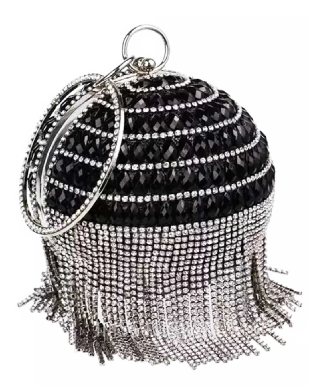 When a statement bag is needed to complete the look. You’ve never seen a clutch quite like the Skyla Circle Clutch Bag which features stunning diamonte jewels in a unique circle shape with wrist ring. Get that “wow, I love your bag” comment at your next event.