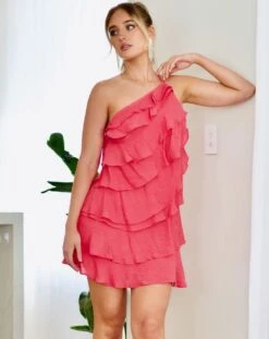 The cutest little ruffle dress has landed. Take our Tara Ruffle Mini Dress to lunch with the girls or a fun date night. Simple and sexy with a v-neckline, one shoulder design and low back cut back. This breezy little number is also perfect for your next Euro vacay.