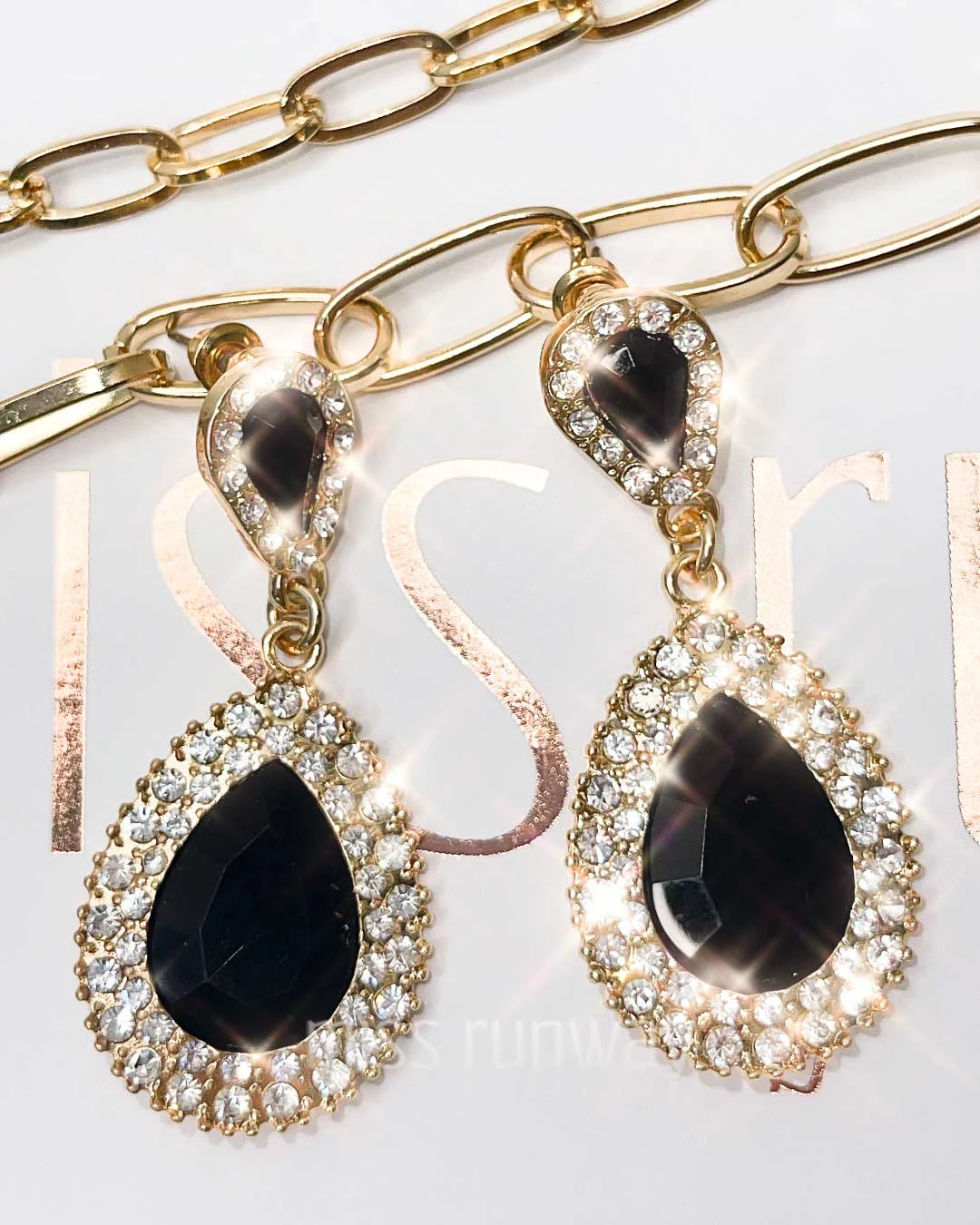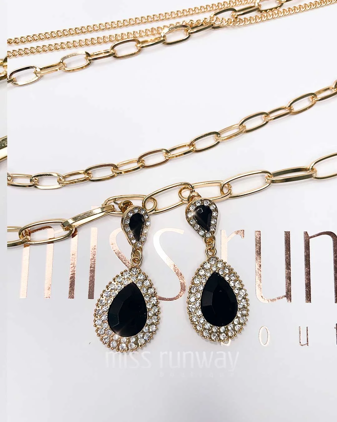 Teardrop Jewel Earrings – Black